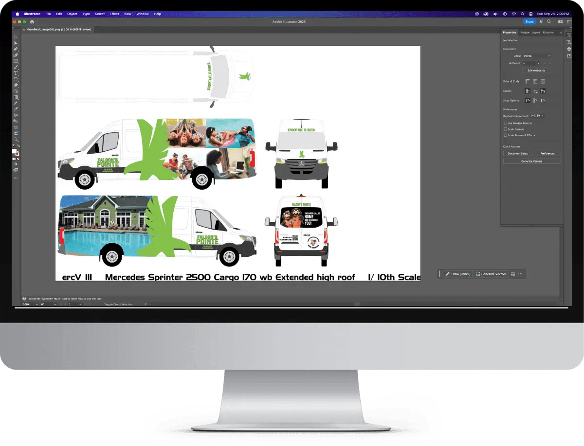 I designed a custom shuttle wrap from the ground up — starting with the flat layout on screen and refining it for legibility, brand alignment, and real-world scale. Once finalized, the design was produced and applied to the shuttle, transforming it into a polished, high-visibility asset that promotes the Falcons Pointe community wherever it goes.